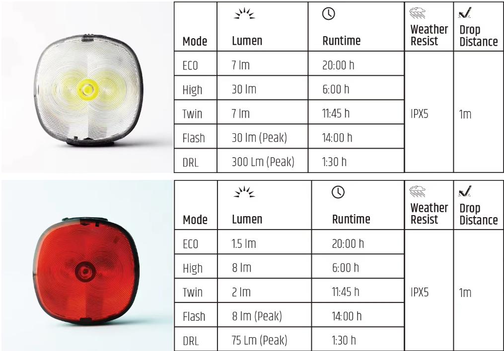 | Lumen | Red light: 75 lumen, White light: 300 lumen |